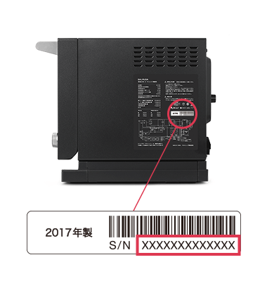 型番は製品本体の背面、底面のいずれかに貼付されている定格ラベルに記載されています。