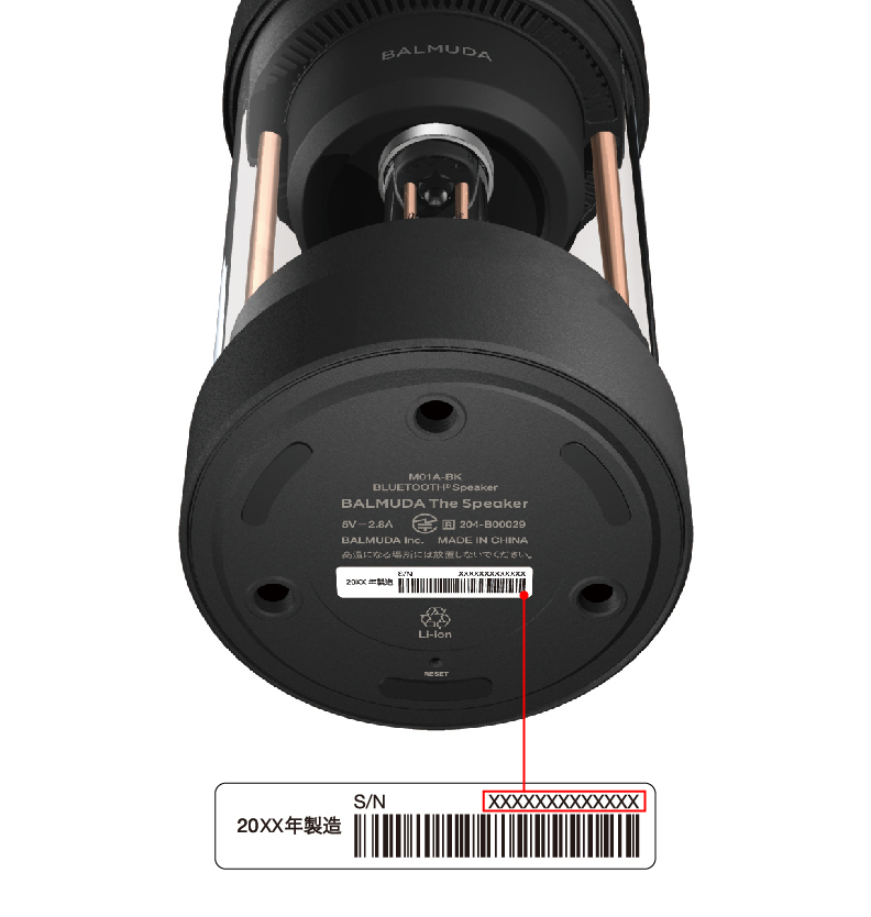 本体底面に記載されています。シリアルナンバーは、「S/N」の後ろの英数字です。
