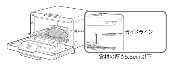 スチームトースターで調理する際のパンの厚さ、器の高さは共に