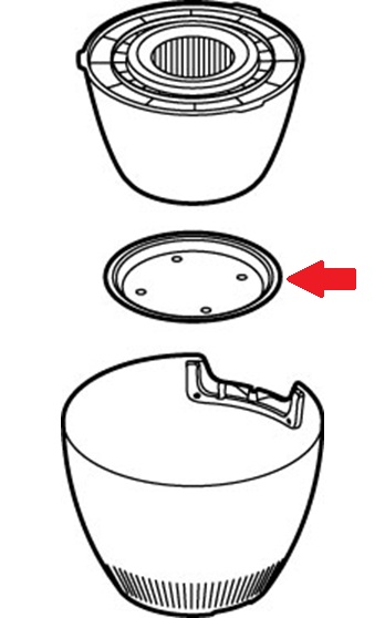 加湿器(AHM01JP-WH)本体の間に隙間ができている場合は、内部の給水ボウルの下に「白い円形の緩衝材」が残っていないかご確認ください。